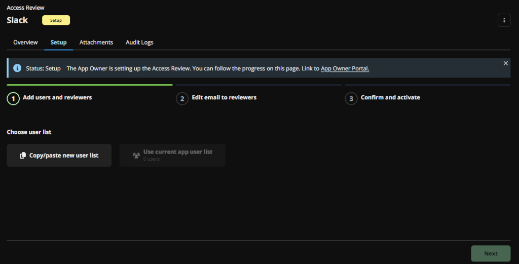1.4 Check and confirm basic information and click ‘Next’ to create a new User Access Review.